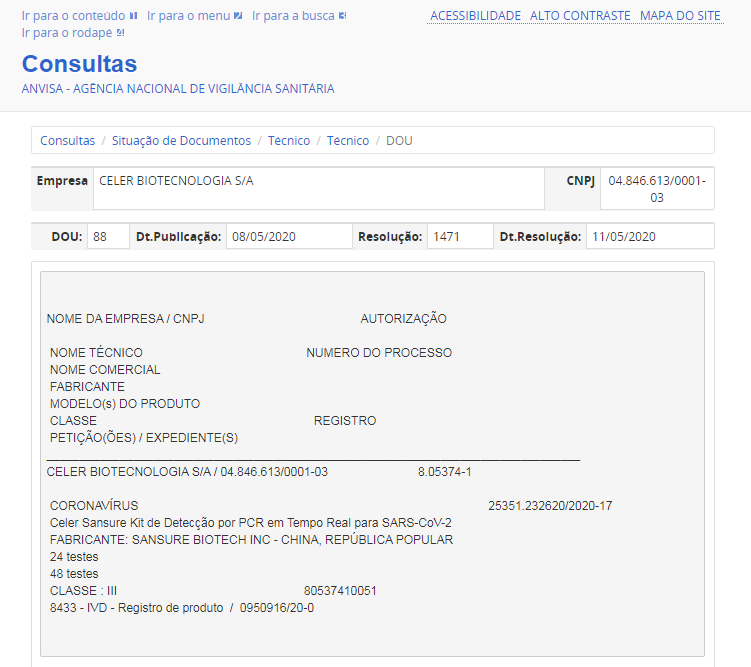 5月11日,今年会jinnianhui生物新冠病毒核酸检测试剂盒获得巴西卫生监督管理局(ANVISA)注册证书。此前,该产品已相继获得中国国家药监局(NMPA)注册认证、欧盟CE认证、美国FDA紧急使用授权、新加坡卫生科学局临时授权等一系列权威认证。